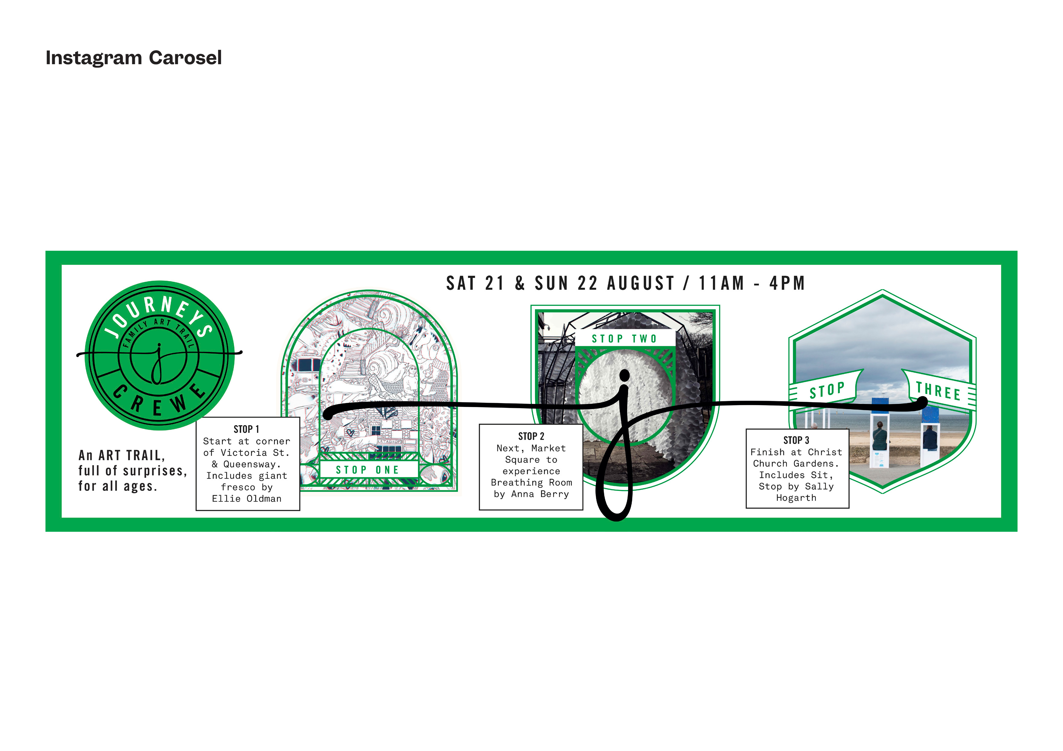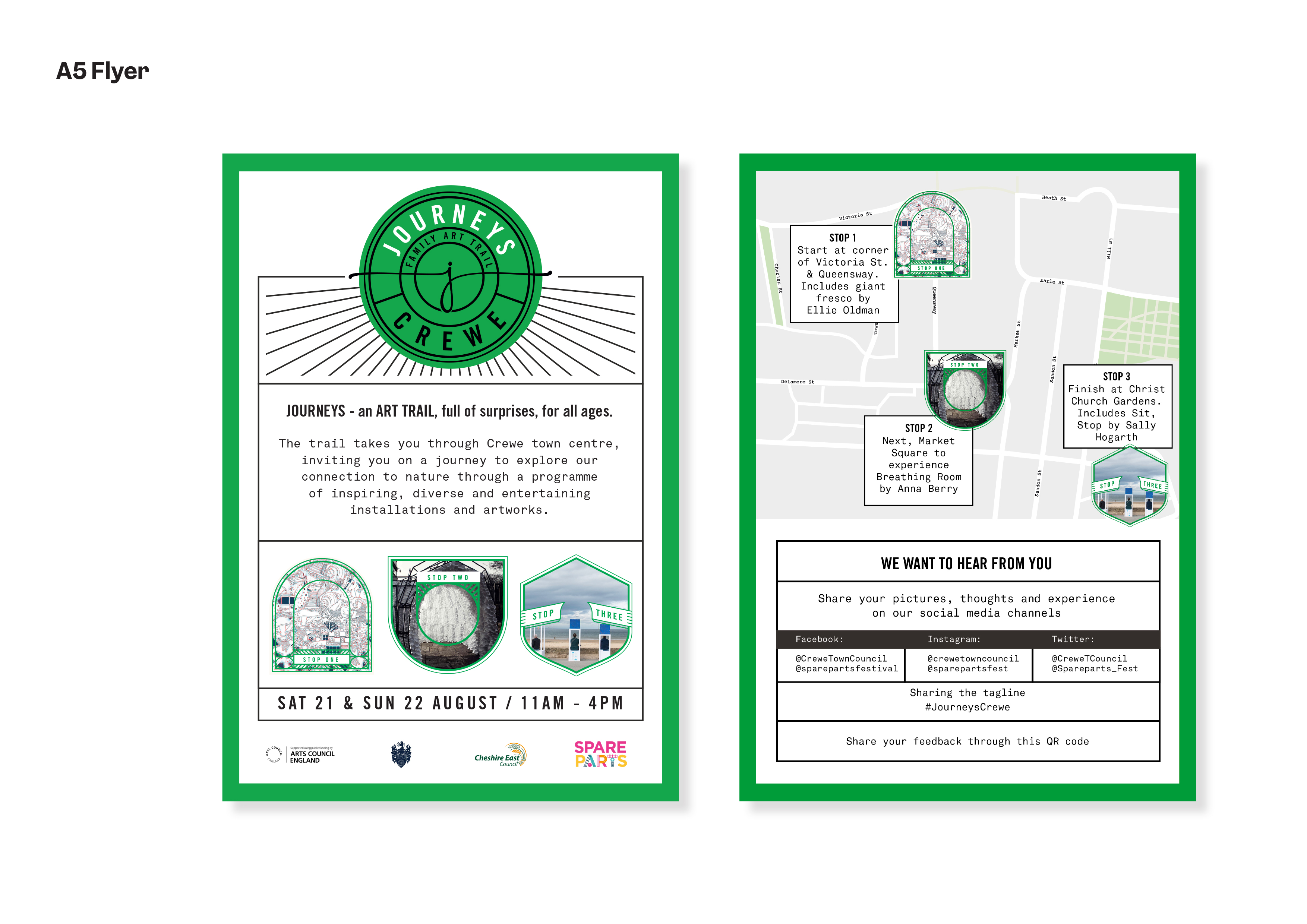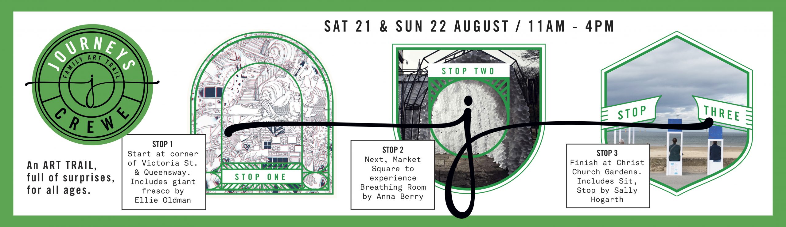 SpareParts returned to Crewe for 2021 with Journeys a 2-day outdoor family art trail in the town on 21 & 22 August. The trail offered audiences the chance to experience the different sites featured in the art trail. Curated into three districts within the town; each offering a creative, interactive and immersive journey, exploring in some way the environment and our relationship with it.
