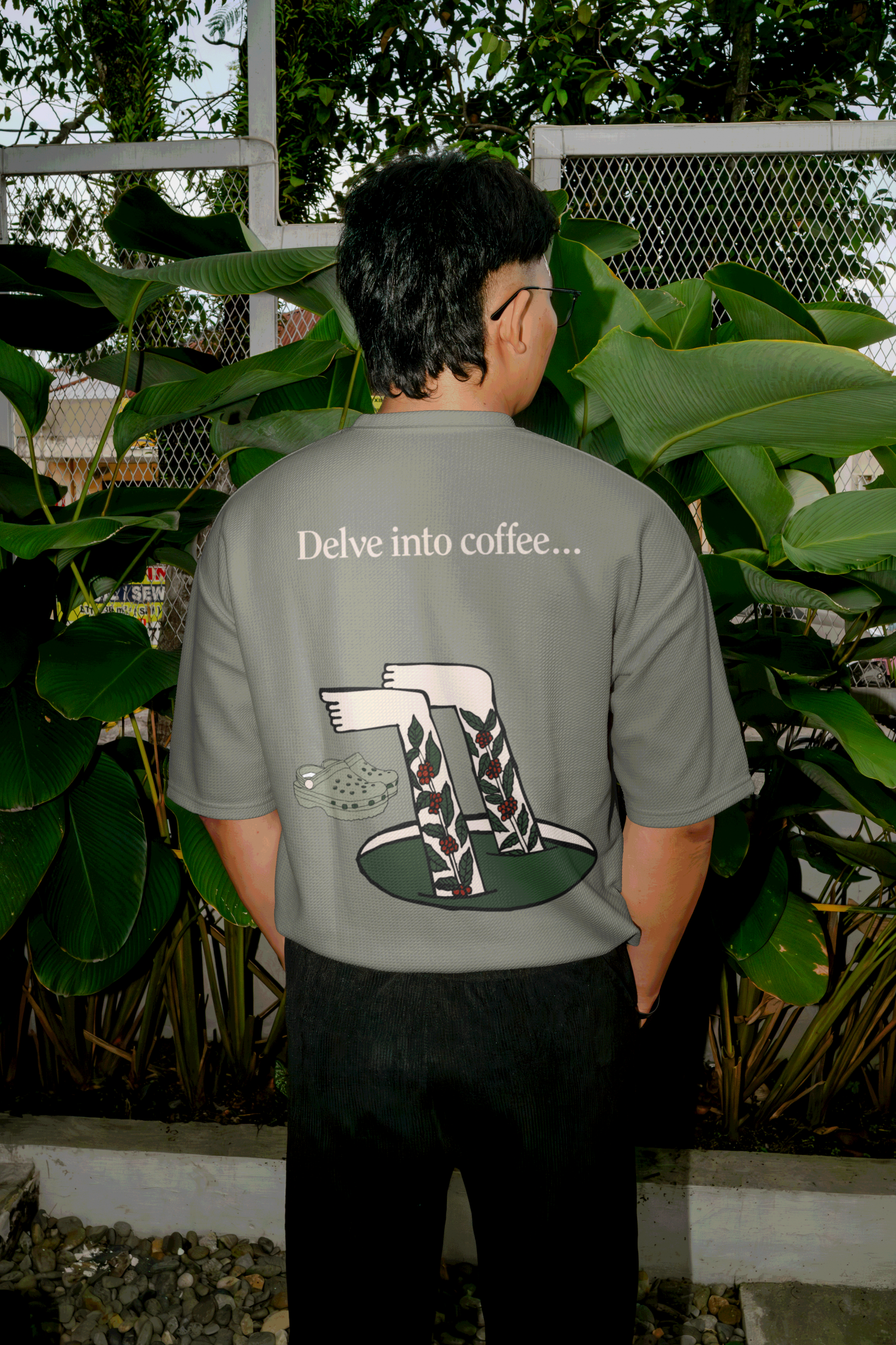 The legs up in the air, crocs tossed aside, is the enjoyment stage. It shows the point where the hard work becomes a simple pleasure. An invitation to delve into the coffee.